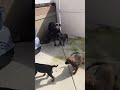 Adele (female w/ purple collar) - sweet and snuggly, although she LOVES to play with Zoey every morning to get the day going. Social and well behaved, sweet Adele