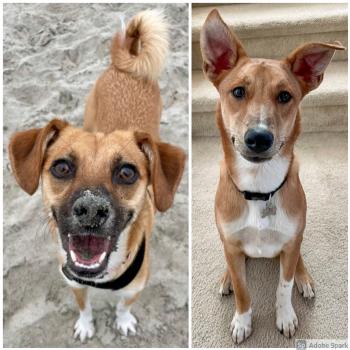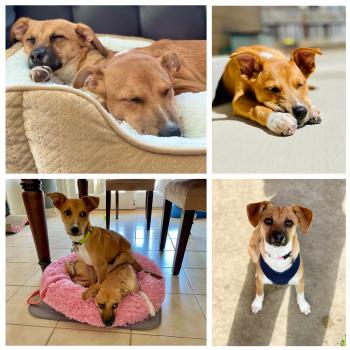 "Reese (fka Pinkie Pie) & Laddie are settling in very well! They cannot get enough of each other, constantly playing or napping together. Laddie is growing very quickly, already doubling his size in the month that we’ve had him. We think he’ll be a larger dog than what was originally predicted, which is definitely fun and exciting. At ~4 months old, Laddie is around the same size as Reese who’s now ~7 months old. These 2 have very different/opposing personalities- Reese is a timid and gentle soul, while Laddie is a curious social butterfly. They’re both relatively quick learners and are potty trained (thank goodness since we have carpet haha)! In terms of training, they’re both pretty food motivated so it’s been really fun coming up with new tricks and games to teach them."
