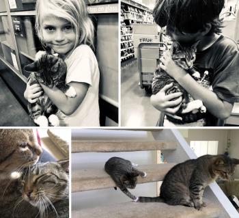 “Providence” is doing well in her new home. She is an absolute joy to have and is the perfect fit for our family. She settled right in from the day we brought her home. She is so incredibly sweet and affectionate. She and my older cat cuddle and snuggle together and she will even go into our 120lbs German Shepherd’s crate and sleep with him. My kids are also smitten with their new little kitten. Since she looks like a little jungle kitty, we went ahead and renamed her “Selva” meaning jungle or rainforest in Spanish. She is after all from Mexico, so we wanted to give her a Spanish name. We feel blessed that she was the last of her litter to be adopted. We like to think she waited patiently for us. I am forwarding some recent photos of she and Mowgli (another ARWOB rescue from 2010) Thank you for checking in and thank you for all you do!"