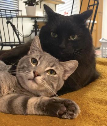 Meeko (fka Rio) was adopted in early November 2021 by a former ARWOB adopter, who had adopted her first kitty from us (Minnie, fka Mini) in March 2018. We just LOVE repeat adopters! Here is what their adoptive mom has to say about them: