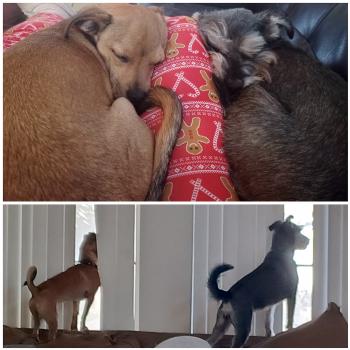 "Mike, now named Zeb, is doing great. He's grown to about 14.5 pounds now (we just went to the vet for some preventative care where he was weighed), and I'm guessing he'll top out around 18-20. He settled in right away with my other dog, Toby, whom he clearly adores. They snuggle, chase each other around the house, and wrestle over toys. I loved to see them both so engaged. He's definitely a cuddler, and I like to think of him as my personal hot water bottle during these last few weeks of cold nights. He's been a wonderful addition to the family. Fun fact for anyone who is a Margaret Atwood fan: the dogs are named after Toby and Zeb of the Maddaddam Trilogy."